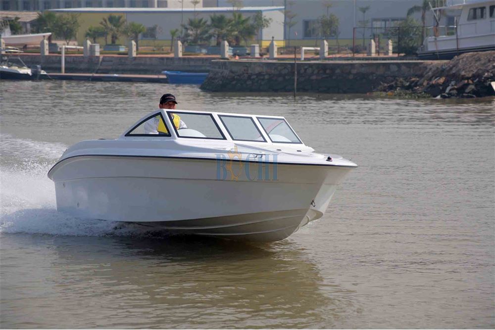 1.Standard Equipments White gel-coat Windshield Stainless steel cleats*4 U-ring*3 Sofa and helm seat and cushion*1 Two color bow light*1 12V bilge pump*1 12V 80A Battery*1 ULTRAFLEX Mechanical Steering systemT85+M66+V33*1