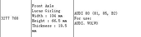 Brake Pad 3277 768 for Audi