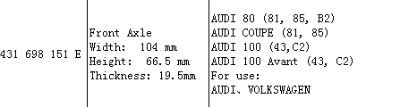Brake Pad 431 698 151 E for Audi