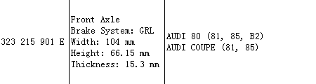 Brake Pad 323 215 901 E for Audi