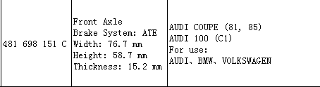 Brake Pad 481 698 151 C for Audi