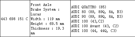 Brake Pad 443 698 151 C for Audi