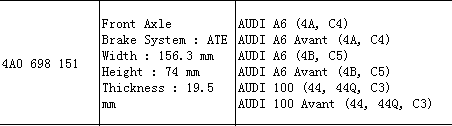 Brake Pad 4A0 698 151 for Audi