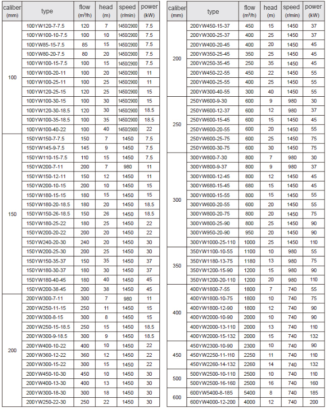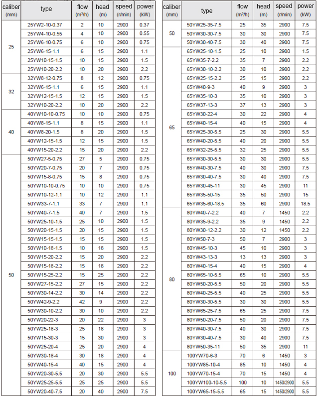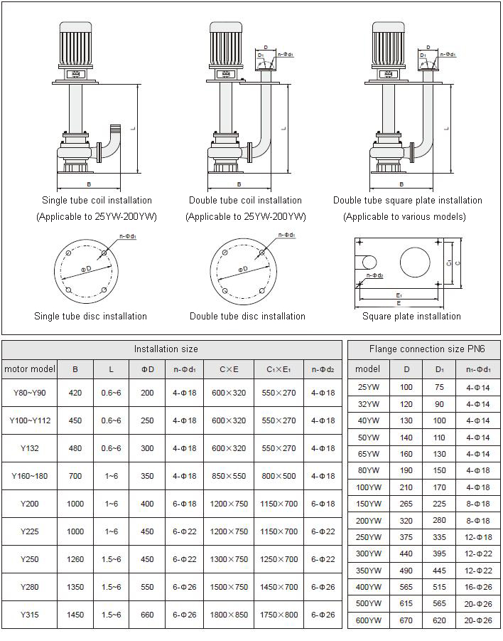 The YW submerged sewage pump adopts a large flow passage anti-clogging hydraulic component design to improve the sewage capacity. The pump body is immersed in the liquid medium to start, there is no exhaustion problem, and it has the characteristics of no leakage, and the depth of the liquid can reach 0.5-5 meters. YW submerged sewage pump has single pipe installation and double pipe installation.