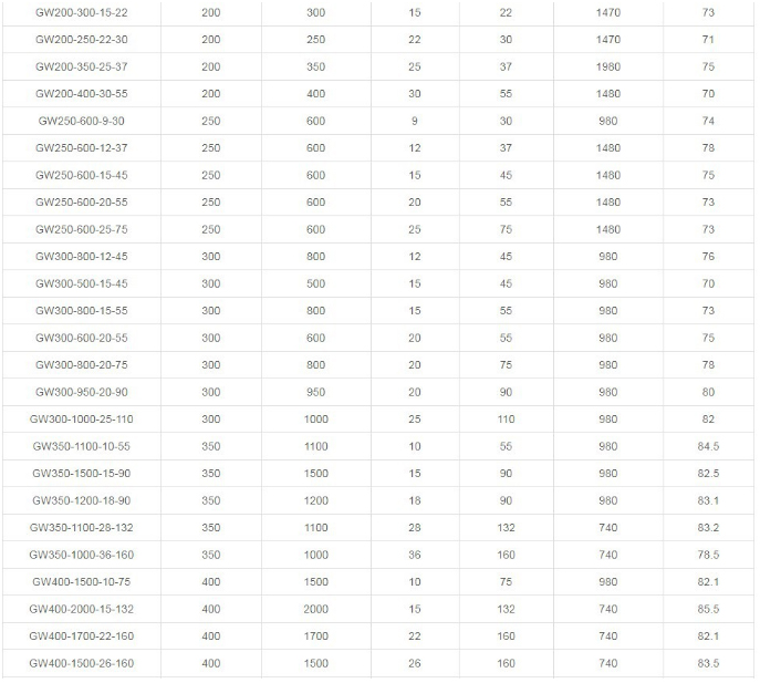 2. The design of the anti-clogging hydraulic components of the large flow channel greatly improves the dirt passing capacity. It can effectively pass the 5 times the diameter of the pump diameter and the solid particles with the diameter of about 50% of the pump diameter.