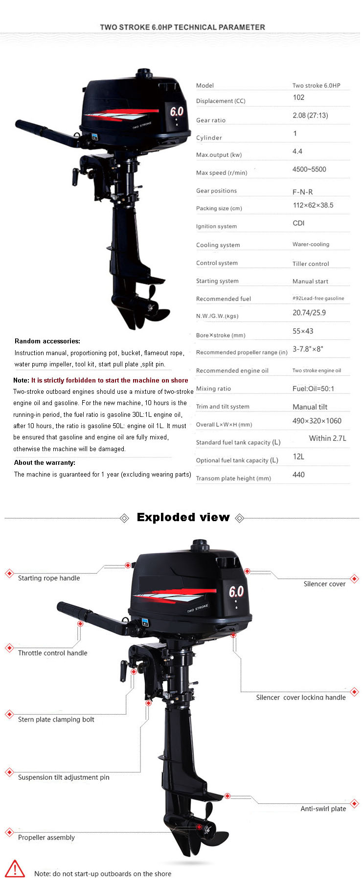 Two stroke 6.0HP outboard Engine